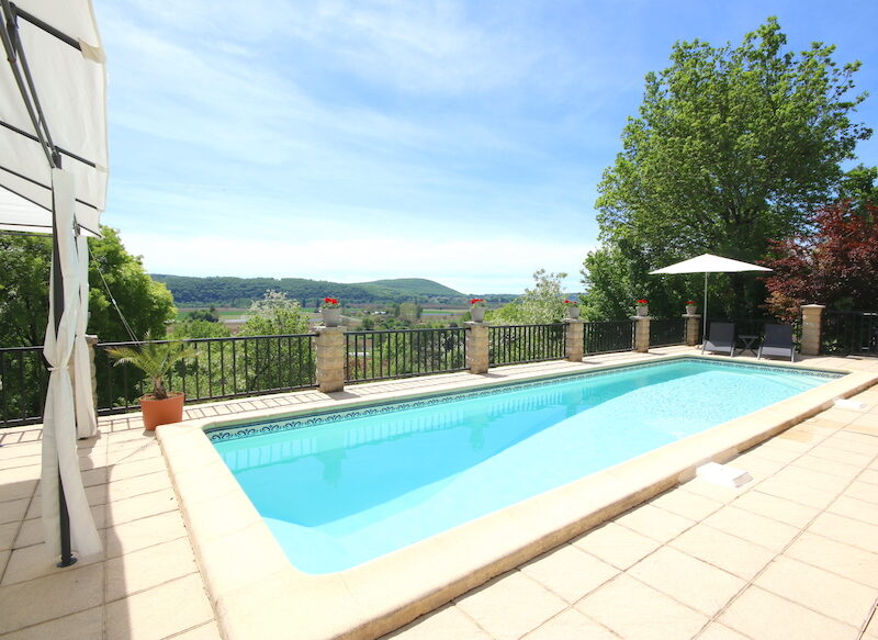 Our 10m x 3m heated pool is available for the use of our guests. The pool area is not overlooked and provides spectacular views of the Dordogne valley. The pool is fenced and an alarm is in place as required by safety guidelines.
